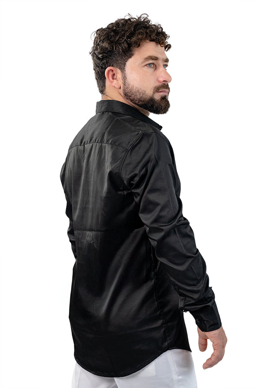 Black Men's Satin Slim Fit Shirt