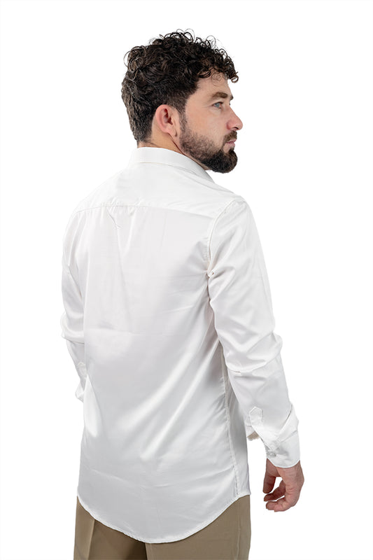 White Men's Satin Slim Fit Shirt