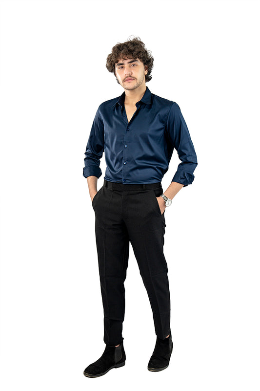 Navy Blue Men's Satin Slim Fit Shirt