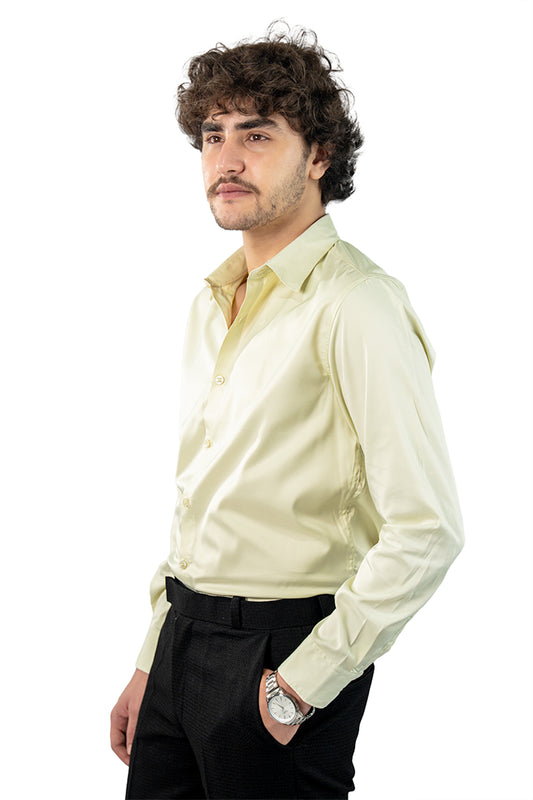 Light Olive Men's Satin Slim Fit Shirt