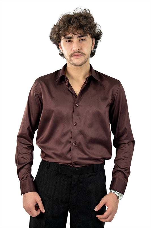 Brown Men's Satin Slim Fit Shirt