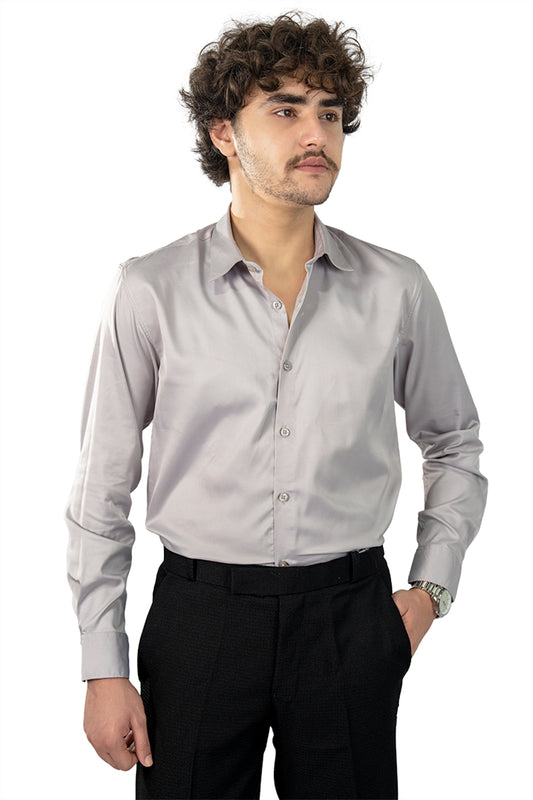 Light Grey Men's Satin Slim Fit Shirt