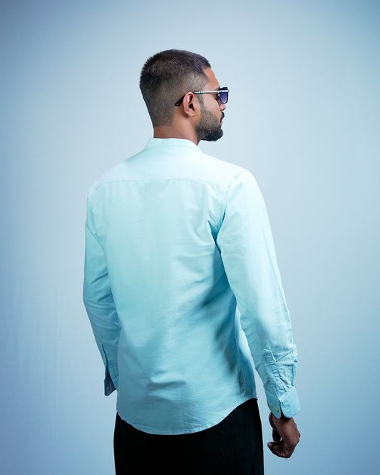 Sky Blue C-Collar Shirt for Men/Regular fit full Sleeve Plain Casual shirt