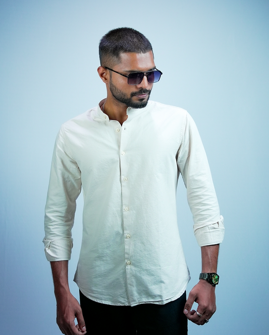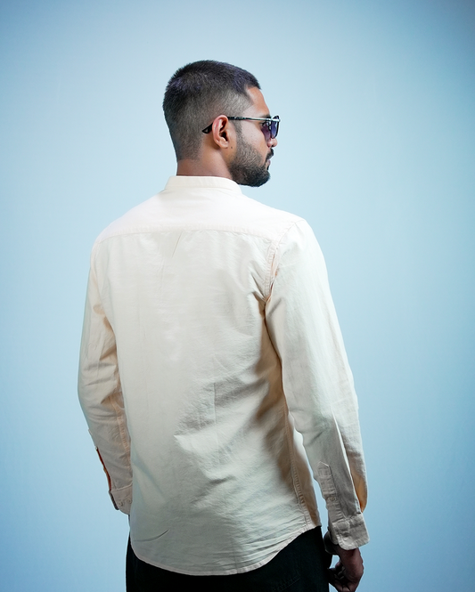 Soft Beige C-Collar Shirt for Men/Regular fit full Sleeve Plain Casual shirt