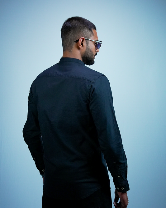 Black C-Collar Shirt for Men/Regular fit full Sleeve Plain Casual shirt