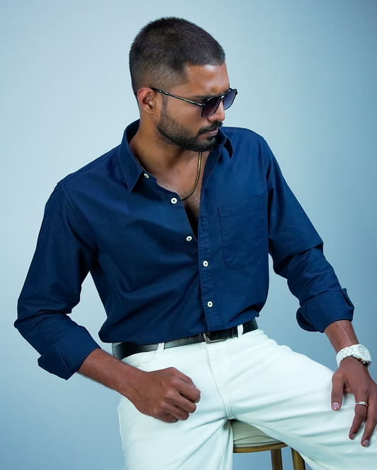 Navy Blue Cotton Shirt for Men/Regular fit full Sleeve Plain Casual shirt